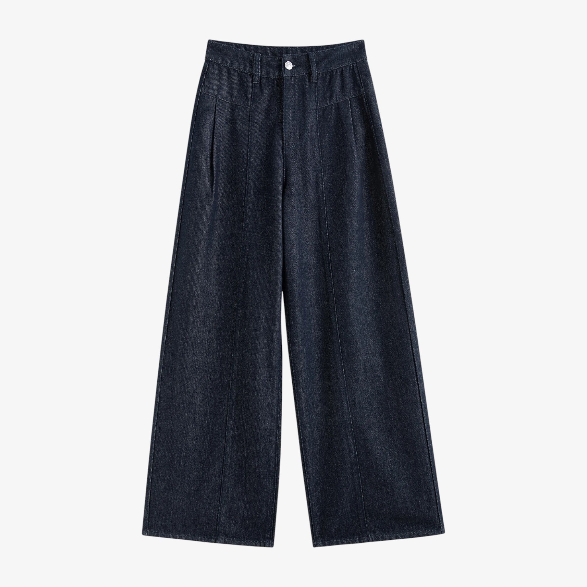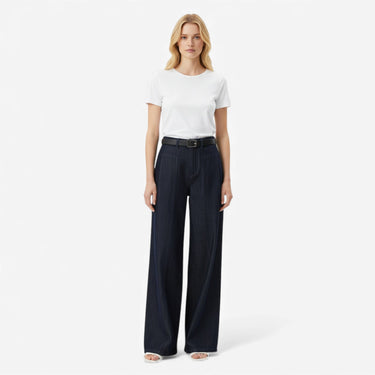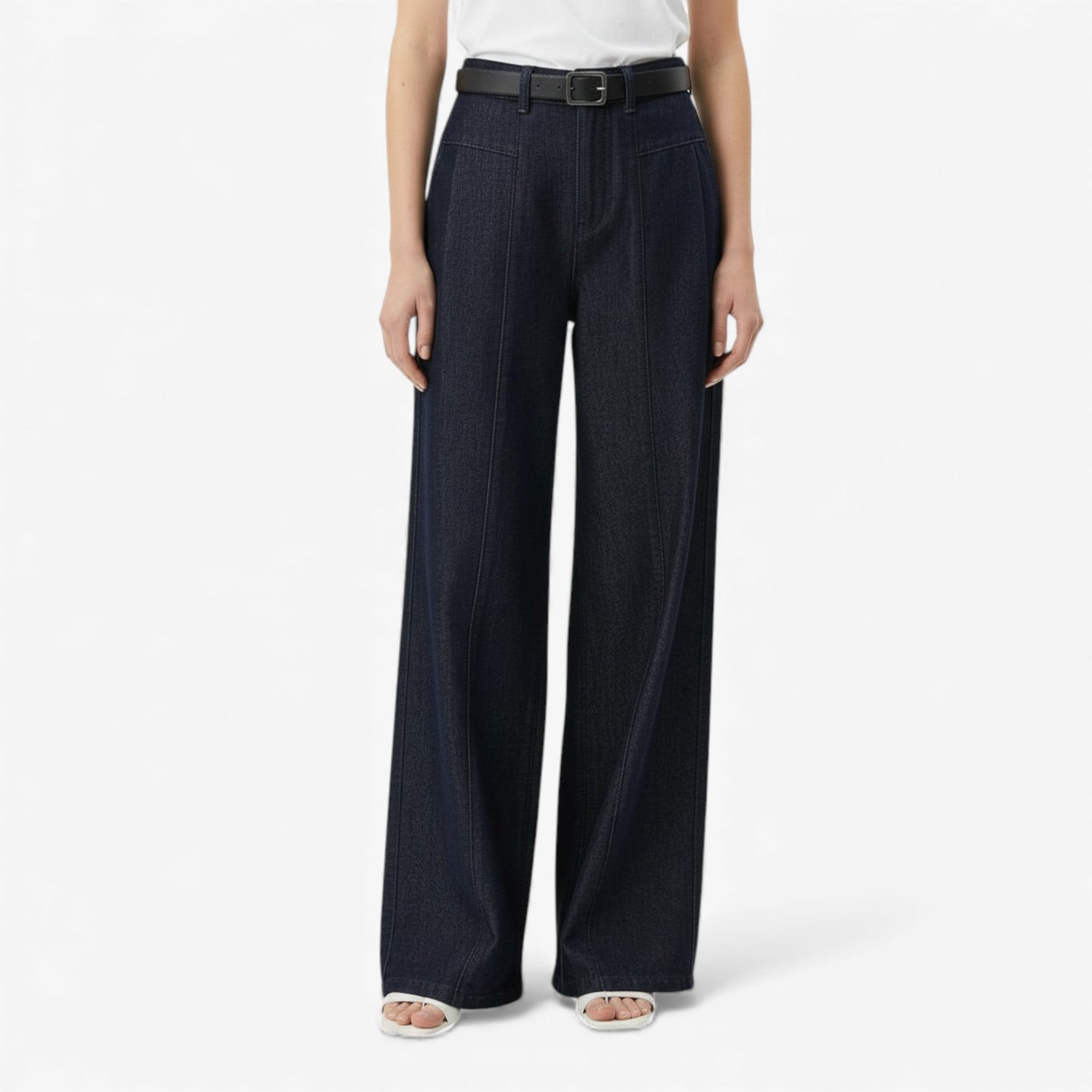 Pantalon Large Femme en Jean Taille Haute Denim Foncé Élégant - Jaly